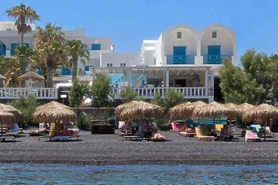 Kamari Beach Hotel ligger i Santorini på stranden, en 1 minuters bilfärd från Kamari strand och 6 minuter från Gamla Thira. Detta hotell vid stranden ligger 9,8 km från Athinios hamn och 8 km från Santorini caldera.