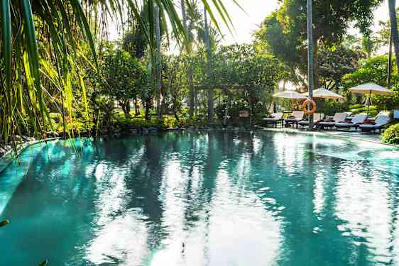 Segara Village Hotel är, precis som namnet antyder, en mysig byliknande resort bestående av trettiotre små byggnader utspridda i en grönskande trädgård. Hotellet ligger direkt på den fina sandstranden i Sanur och är både modernt och traditionellt på samma gång. Dubbelrummen och bungalowerna är snyggt inredda med stilrena möbler, samtidigt som detaljerna bibehåller känslan av att vara i Indonesien och tropikerna.