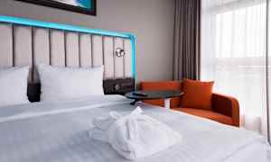 I rummens utrustning ingår luftkonditionering, WiFi, TV, telefon, kassafack, minibar (mot avgift), kaffe/te-bryggare, skrivbord och badrum.