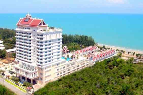 Grand Pacific Sovereign Resort and Spa är en strandresort som ligger 22 km norr om Hua Hin och 180 km söder om Bangkok i ett område känt för sina kungliga palats, antika tempel och grottor.